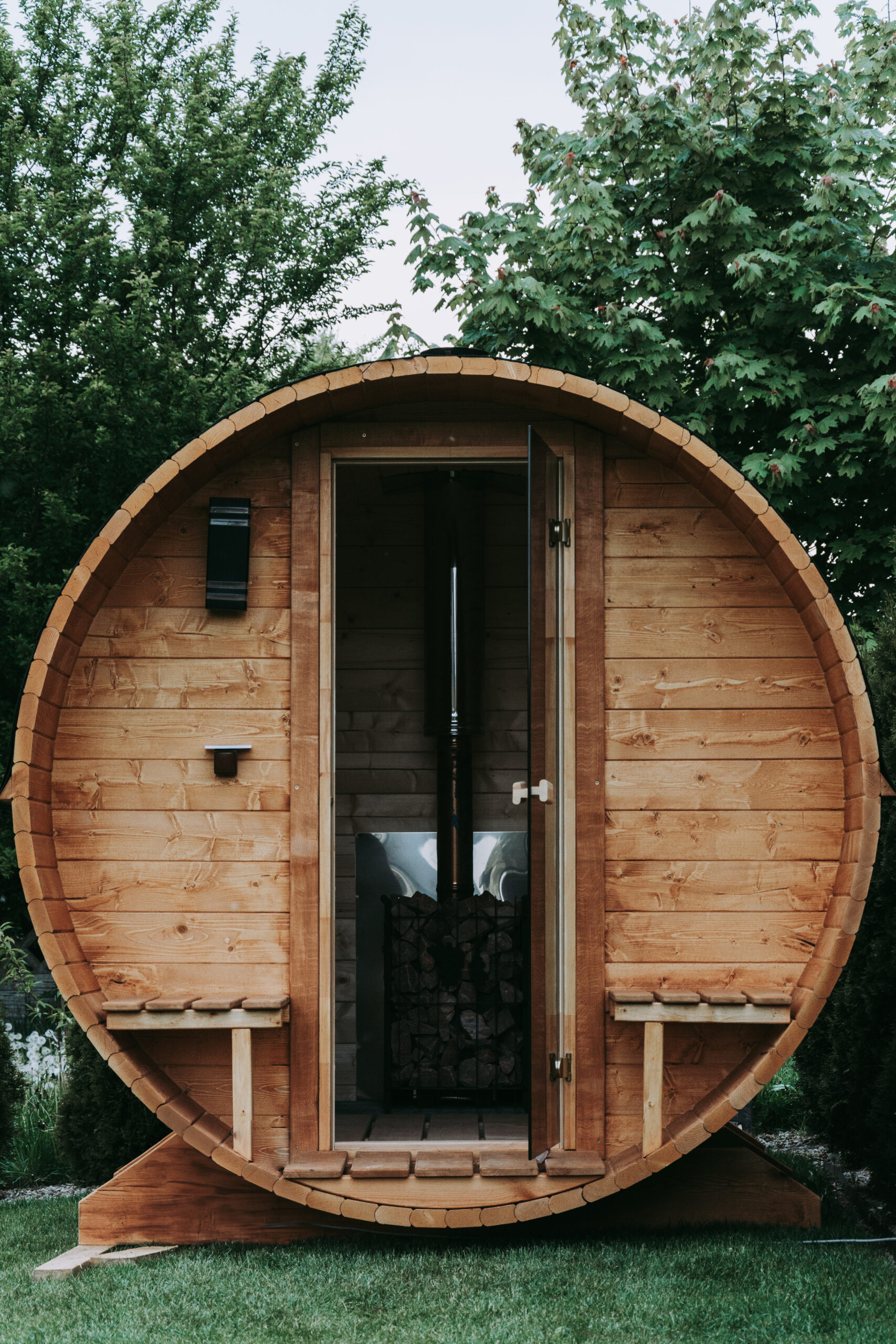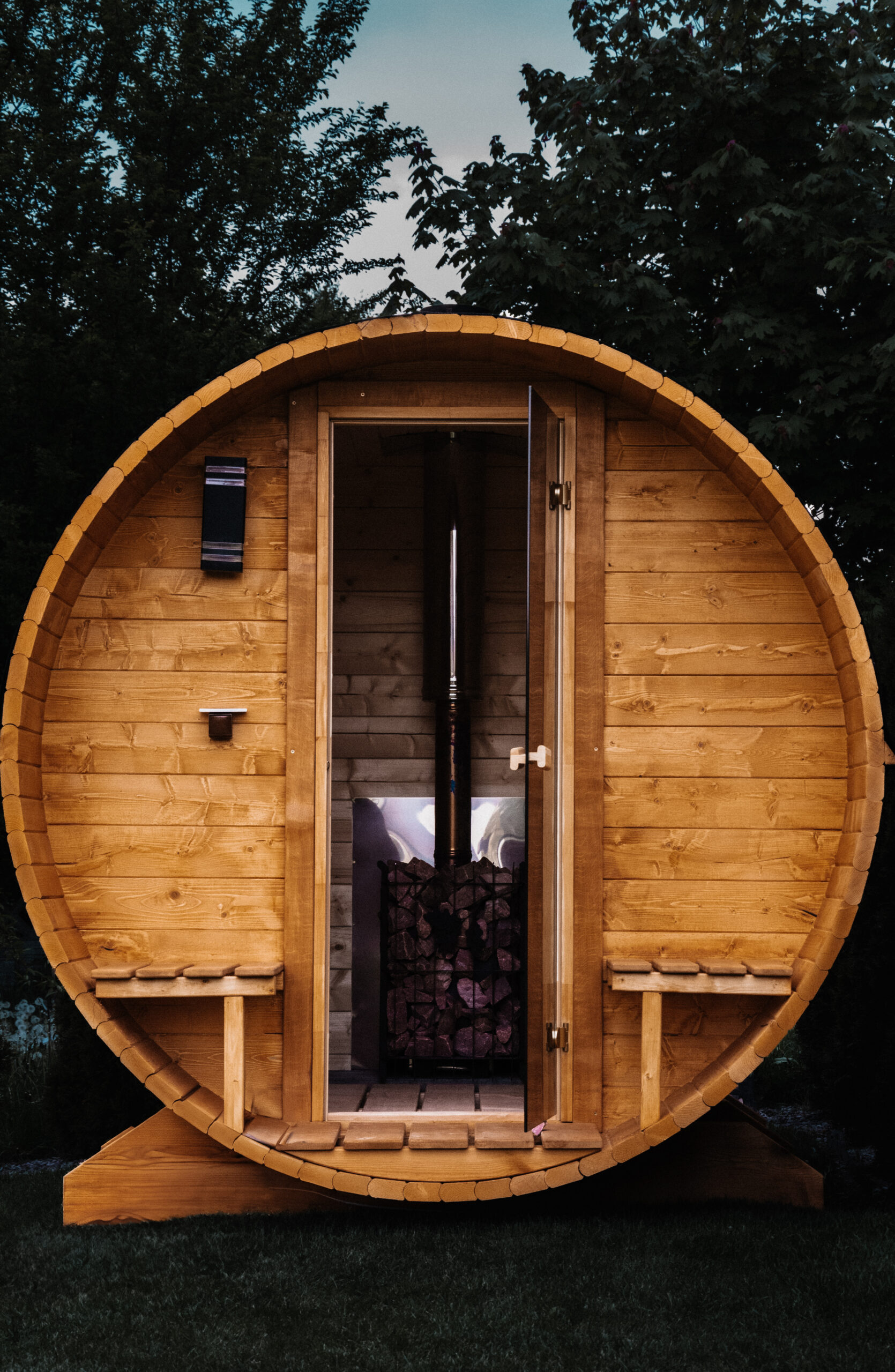 Wydajny piec saunowy z kamieniami – zapewnia równomierne nagrzewanie i intensywną, naturalną parę. Idealny do tradycyjnych kąpieli w stylu fińskim. Możliwość regulacji temperatury i polewania wodą dla głębszego efektu.